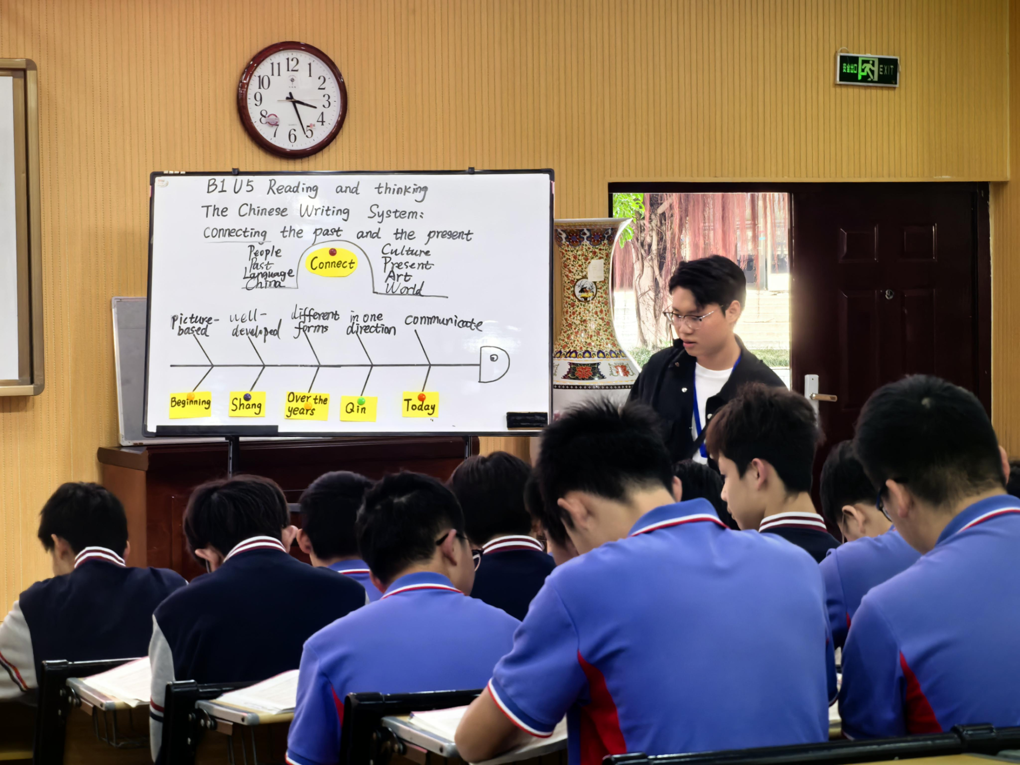 到校后,三位老师与南宁市东盟中学的英语教师团队一同观摩了实习生林益业的公开课。林益业同学的课堂条理清晰,结构设计巧妙,各环节之间过渡自然流畅。其板书形式新颖,为学生们留下了深刻印象。课堂上,师生互动频繁,学生们能紧跟教学节奏,积极参与。课后,现场老师对这堂汇报课进行了集体评课。评课过程中,实习生林益业首先从文本解读、活动设计、学法指导等方面分享了自己的备课思路。随后,BWIN必赢,BWIN必赢蒙岚老师、邓芳娇老师,以及南宁市东盟中学赵代玲老师、谢燕清老师,分别对林益业同学的汇报课进行了细致的点评。老师们提出了很多建设性的意见和建议,让实习生们学习到了宝贵的教学经验。