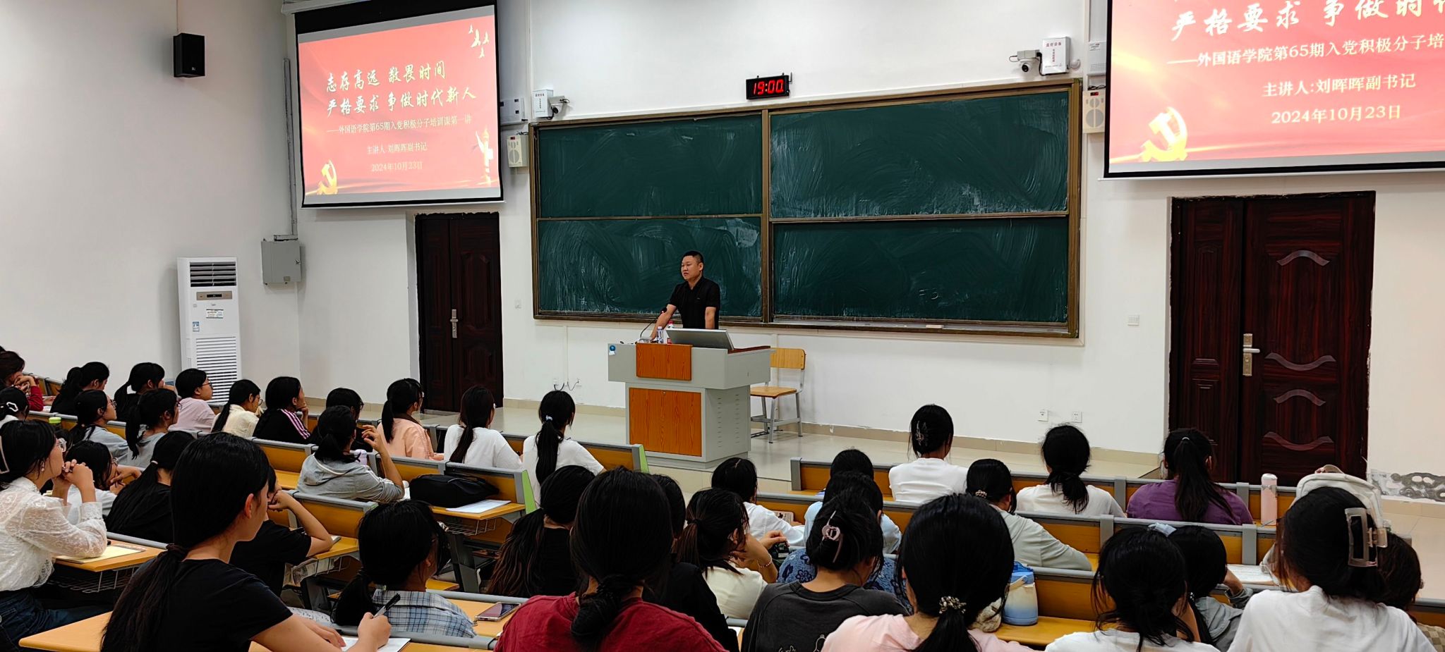 10月23日晚,BWIN必赢党委在实验楼1B-113举办了第65期入党积极分子培训会第一讲。本次培训会主题为“志存高远,敬畏时间,严格要求,争做时代新人”,学院党委副书记刘晖晖主讲,本学期认定的125名入党积极分子参加了此次培训。